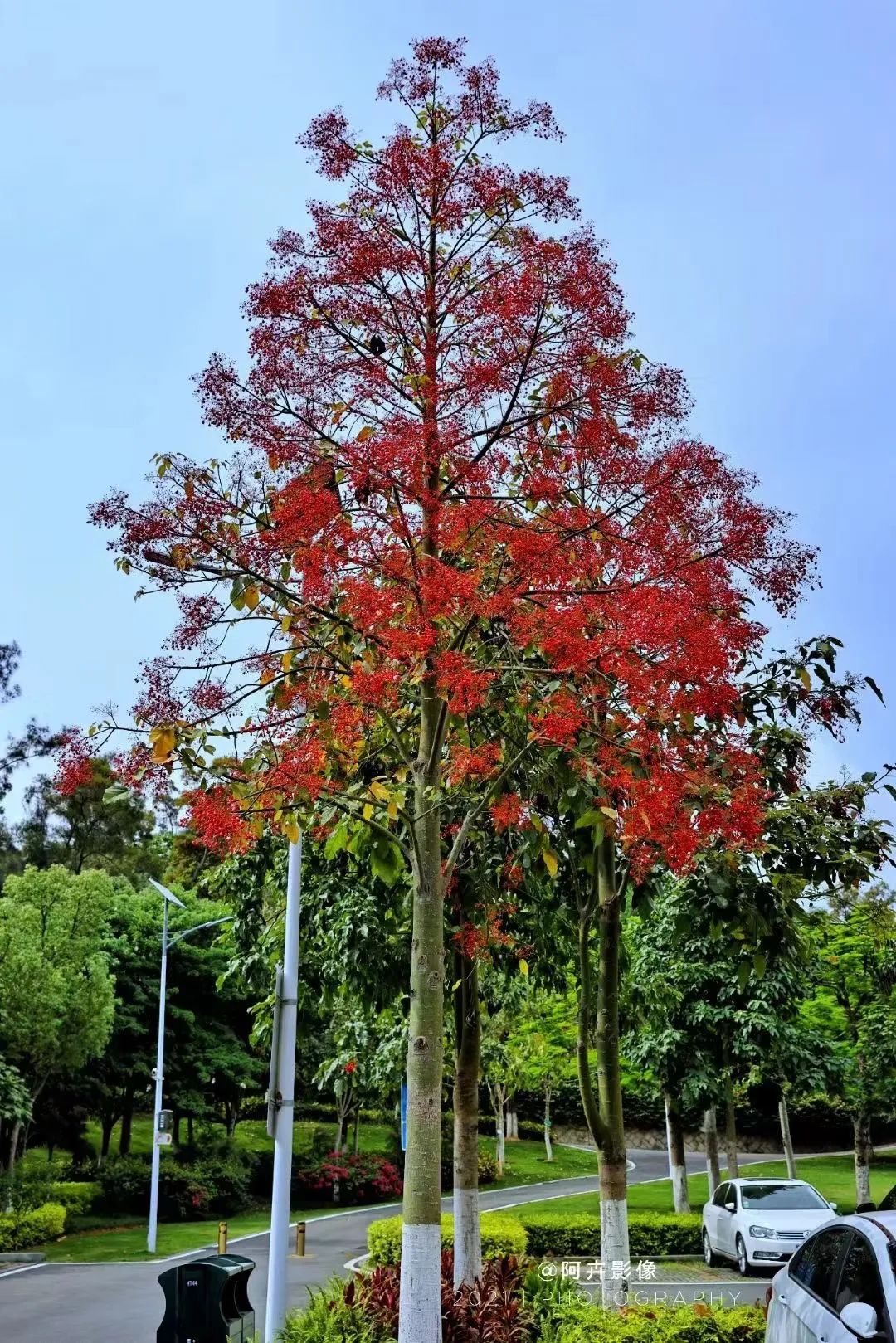 澳洲火焰别名木槭叶萍婆,原产于澳大利亚,具有耐旱、耐寒,耐-4℃低温,抗病性强的优点。因其树形富有层次、株形立体感强、花卉视觉形态独特,适合于公园种植,被引入作于湖里薛岭山、虎头山公园的生态景观建设。