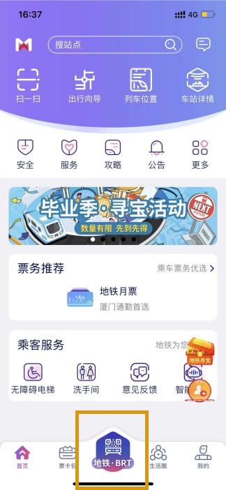 下载厦门地铁APP(或更新至最新版)