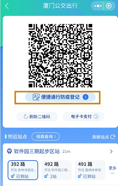 使用厦门地铁APP/“厦门公交APP”或“厦门公交出行”小程序乘车码,一键查询防疫健康信息!现在您乘坐公共交通时,进站乘车使用只需出示乘车码,系统将自动跳出使用者的健康码、行程码等信息,核验通过后即可安检扫码过闸进站乘车。