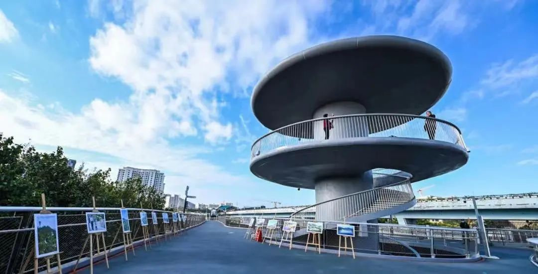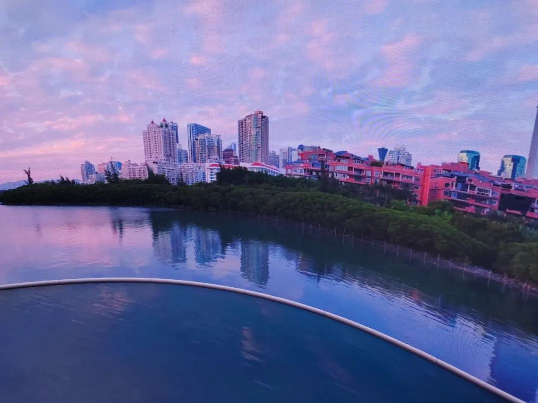 进去之后,仿佛置身云端,脚下一会儿是五缘湾一会儿来到美丽的筼筜湖。蓝天白云海鸟翩翩飞,宜居厦门的生态之美、历史积淀之美一幅幅生动展示。