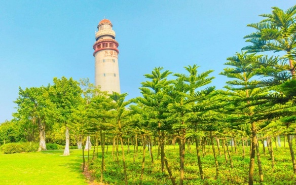 背朝灯塔,让金灿的光晕折射在镜头中央